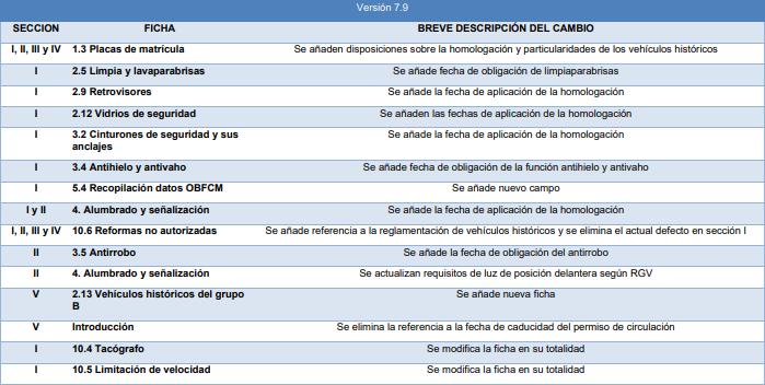 • En el defecto 1.3 Placas de matrícula, se añade la descripción de defecto «1.1 Inexistencia de distintivo de vehículo histórico».